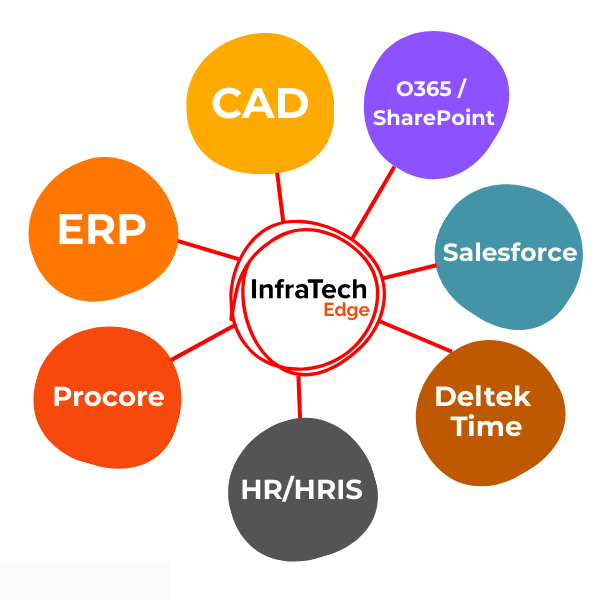 We integrate CAD and technical tools with project management and financial systems, eliminating redundant data entry and improving coordination, reporting accuracy, and downstream visibility.